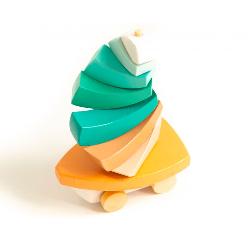 Es ideal para acompañar al niño en la primera infancia, desarrollando la creatividad y fomentando el juego simbólico a partir de la creación de diferentes figuras y escenarios con los bloques (se pueden formar otros veleros más pequeños, muebles para muñecos, sendas para autitos y mucho más). Invita al desplazamiento a través del gateo que permite descargar peso en las manos y asi fortalecerlas y prepararlas para experimentar distintas funciones manuales.